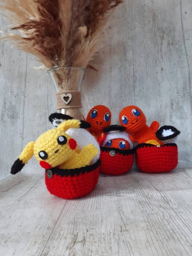 Personajes y diseños inspirados en anime y videojuegos, tejidos con magia.